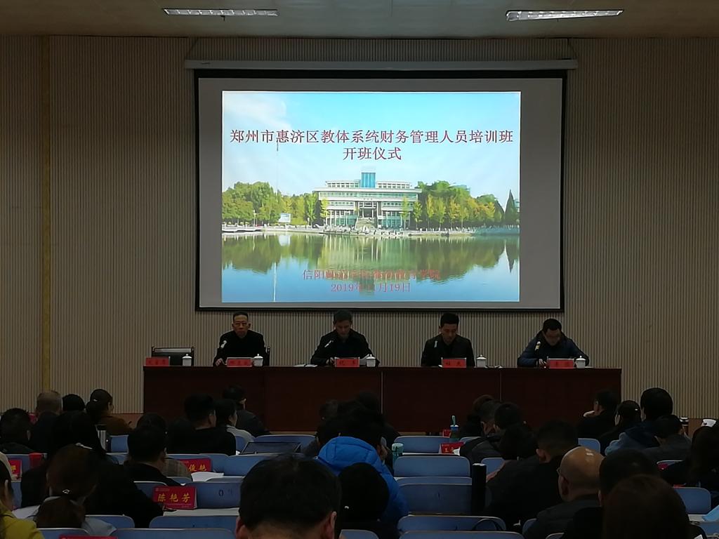 11月19日上午,郑州市惠济区教体系统财务管理人员培训班开班仪式在必赢官网文科楼报告厅举行。郑州市惠济区教体局负责人杜东、郑州市惠济区教体局计财科科长李恒、必赢线路检测3003院长祝军及副院长邓觅成出席开班仪式,郑州市惠济区教体系统财务管理120多名培训学员参加了开班仪式。开班仪式由邓觅成主持。