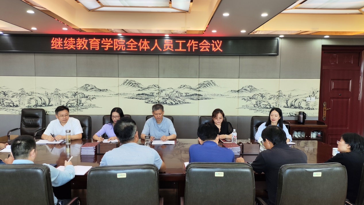 院长祝军对上学期期末和暑期继续教育工作作了回顾总结,圆满举行了2024年高等学历继续教育毕业典礼暨学士学位授予仪式,召开了校外教学点工作会议,完成高等学历继续教育毕业证书发放,开展非学历教育,组织校史编撰等工作。就本学期做好高等学历继续教育招生工作、校外教学点年检、商务部援外培训项目实施、面授教学、学生日常学习管理、2024年成人高校招生艺术和体育类专业加试、高等学历继续教育本科生申请学士学位外语水平考试、非学历教育工作8个方面进行安排部署。