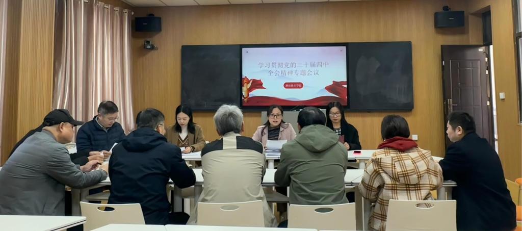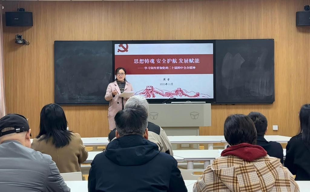 党总支副书记顾玲玲学习传达校党委《关于做好党的二十届四中全会精神学习宣传的通知》精神,宣读《必赢线路检测3003关于学习贯彻党的二十届四中全会精神的实施计划》。